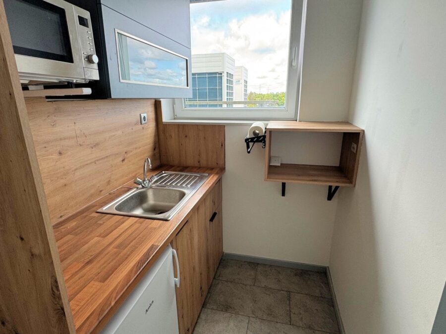 Die moderne und helle ca. 35 m² große Büroeinheit besteht aus einem Büroraum, einer Küche, einem Duschbad und einem Flur.