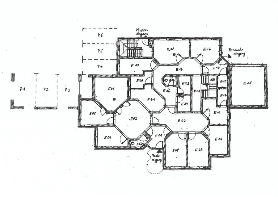 Die freistehende Einheit verfügt über zwei separate Eingänge: ein repräsentativer Kundeneingang sowie ein separater Personal- bzw. Nebeneingang, der interne Abläufe, Warenanlieferung oder Personalzugang klar vom Publikumsverkehr trennt. Dies stellt einen deutlichen funktionalen Vorteil für Praxis- und Büroorganisation dar.