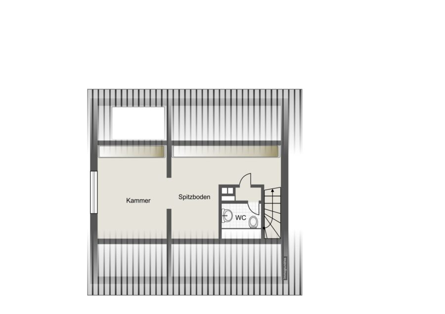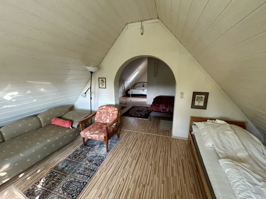 Der ausgebaute Spitzboden bietet zusätzlichen Raum sowie ein separates WC. Im Kellergeschoss stehen zwei weitere Nutzräume zur Verfügung.