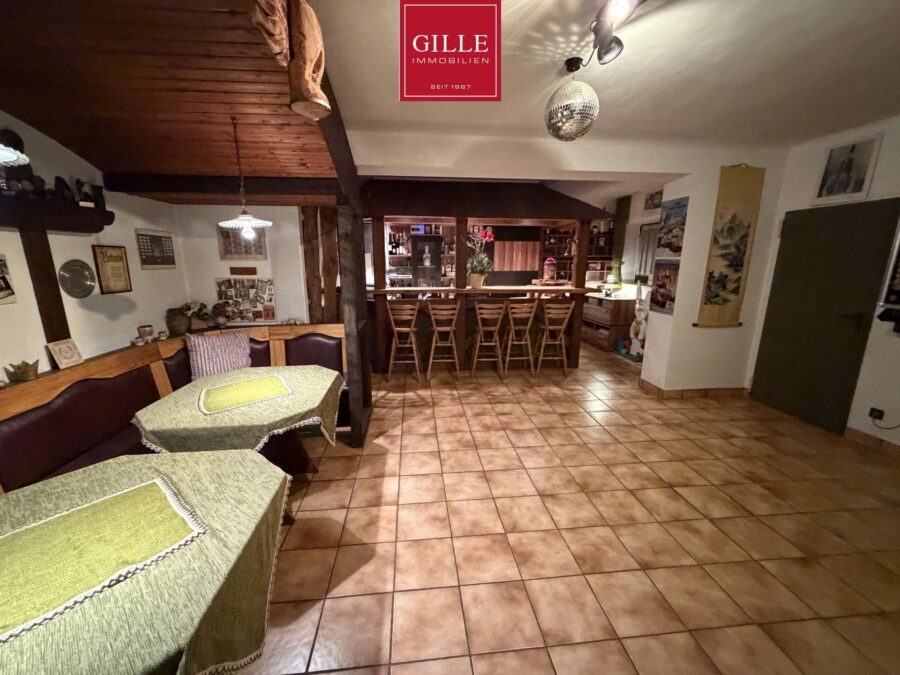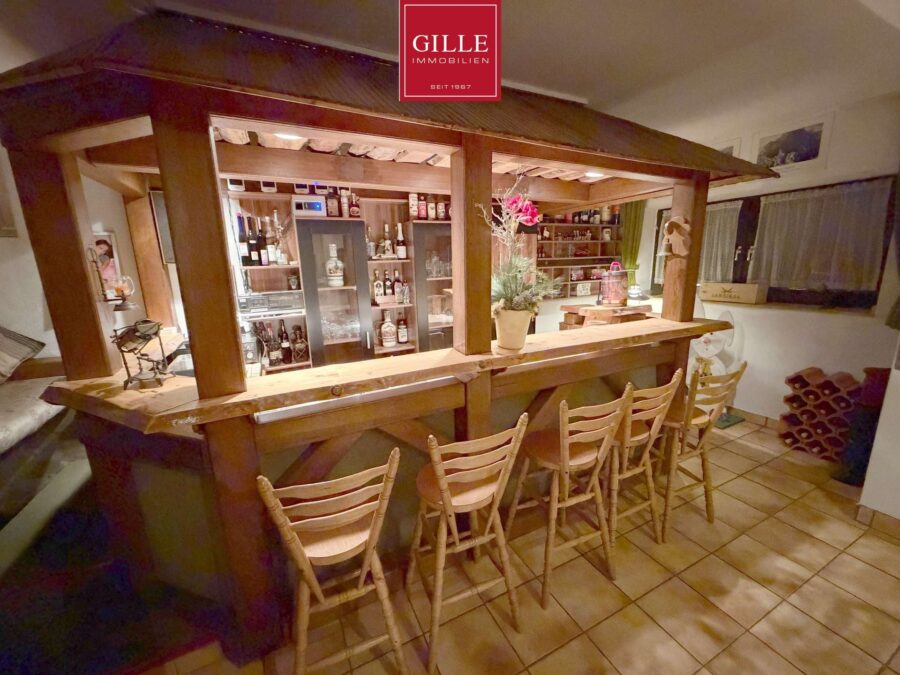 Großer Partykeller mit Thekenanlage und Mobiliar