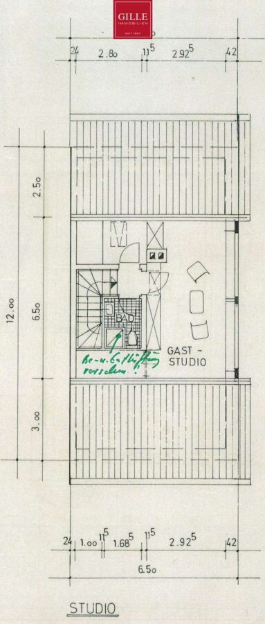 Ausgebautes Dachstudio mit eigenem Duschbad