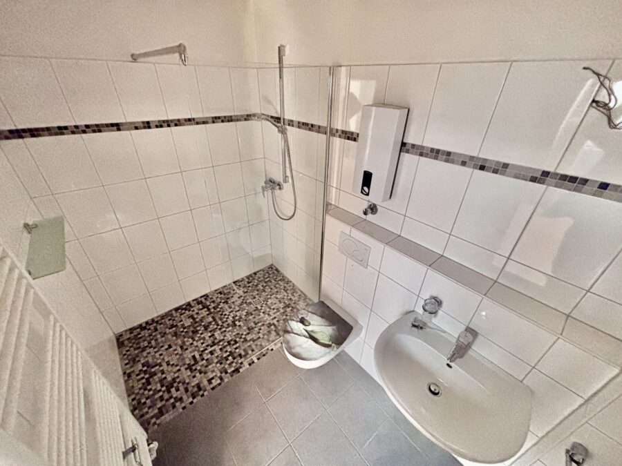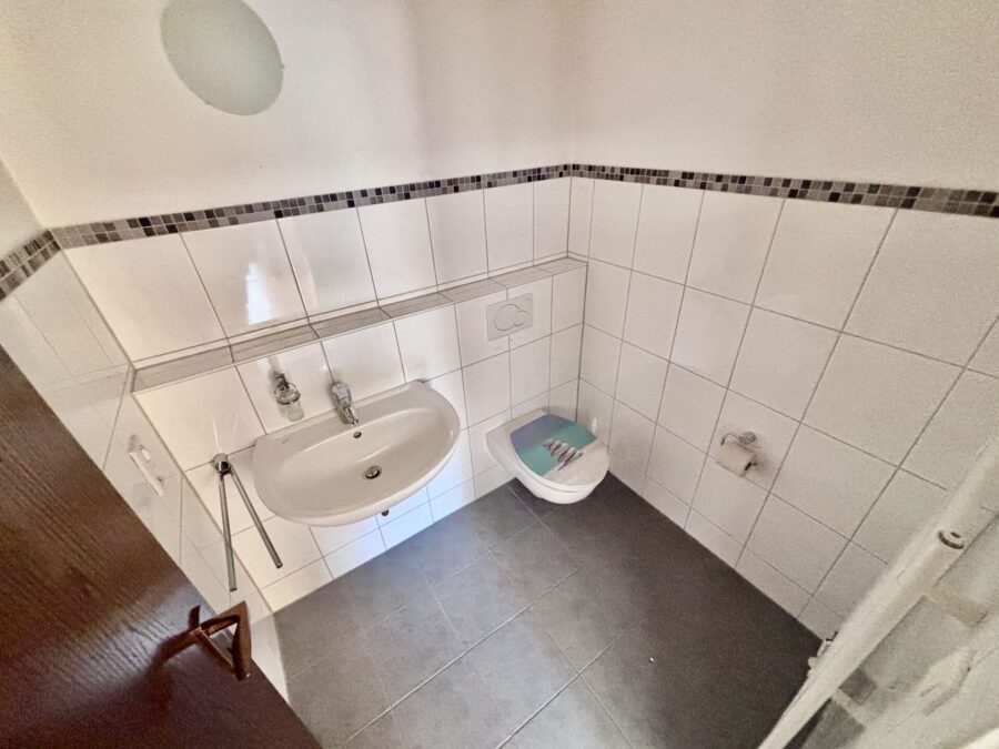 Die im ebenfalls Obergeschoss liegende Einliegerwohnung mit 50 m² verfügt über eine Diele, ein Badezimmer, eine Küche sowie ein geräumiges Wohn- und Schlafzimmer mit großer Loggia. Die Einliegerwohnung ist vermietet, die mtl. Kaltmiete beträgt EUR 350, - zzgl. EUR 50, - für den Außenstellplatz.