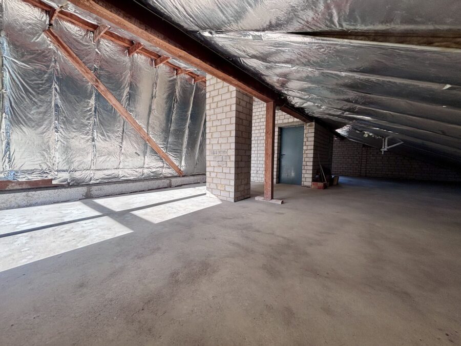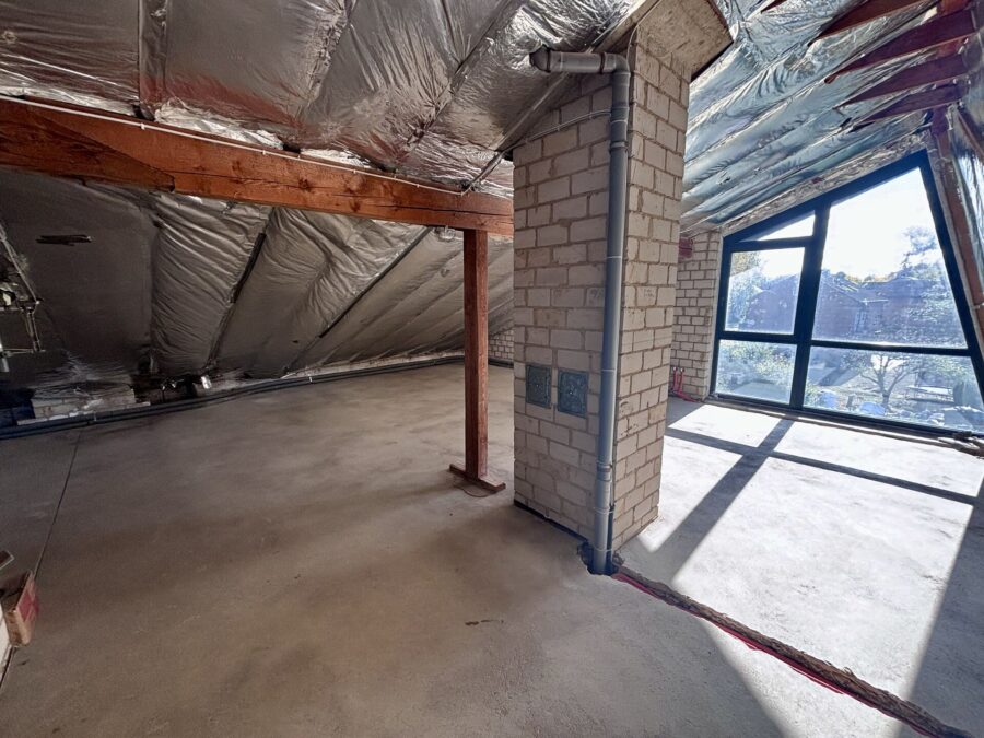 Ein Stockwerk höher, im Dachgeschoss, befindet sich ein großes Studio, welches zum Ausbau vorbereitet wurde und viele Möglichkeiten bietet.
