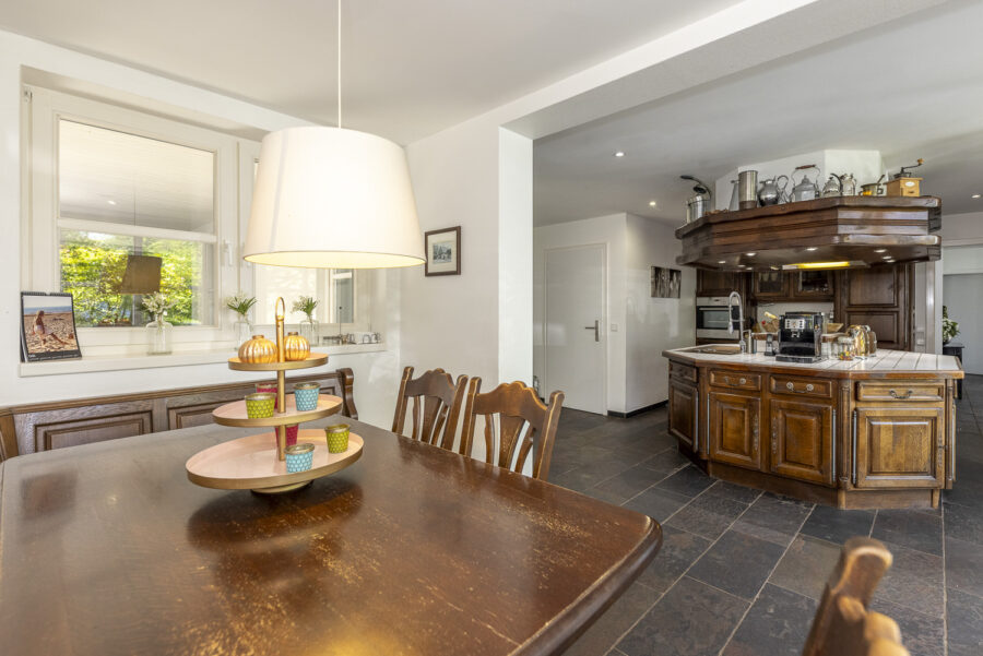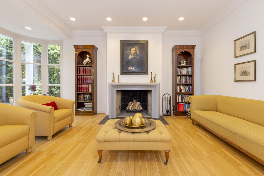Das elegante Landhaus wurde mit hohem baulichem Anspruch errichtet und bietet eine durchdachte Raumaufteilung über drei Ebenen. Großformatige Fenster im Erdgeschoss sowie mehrfacher Zugang zum Garten sorgen für helle, lichtdurchflutete Räume. Der Wohnbereich mit Kamin strahlt Behaglichkeit aus und verbindet modernen Wohnkomfort mit stilsicherem Ausbau. An die Küche, mit Essbereich, schließt sich ein separater Hauswirtschaftsraum an, der auch über einen eigenen Zugang von außen verfügt.
