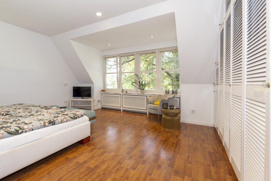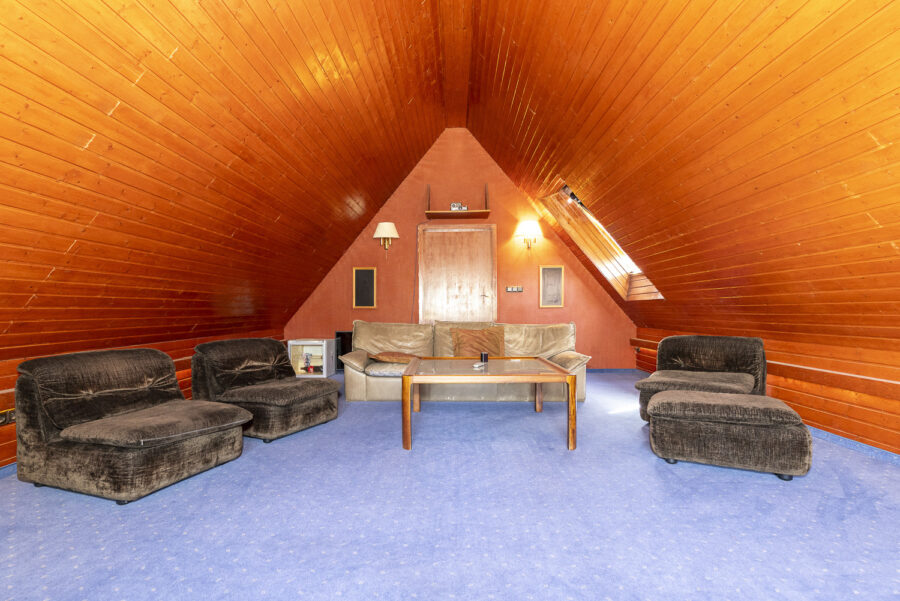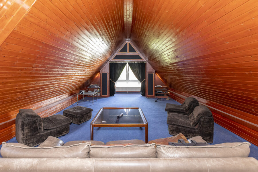 Der ausgebaute Spitzboden (keine Wohnfläche) umfasst zwei große Räume, die derzeit als Arbeitszimmer und Spiel- bzw. Heimkinobereich genutzt werden.