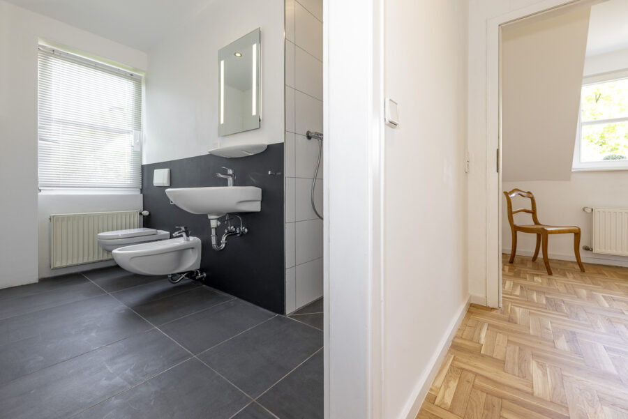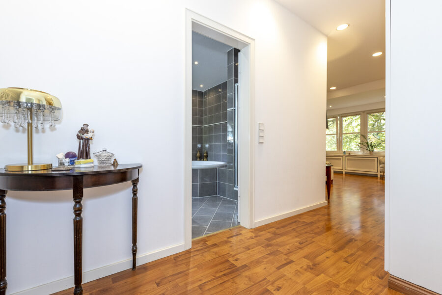 Der Ausbau des Objektes ist hochwertig und geschmackvoll ausgeführt. Bodenbeläge in Naturstein und massivem Eichenparkett wechseln sich ab. Mit Ausnahme eines Badezimmers im Elternschlafzimmer wurden alle Bäder erneuert.