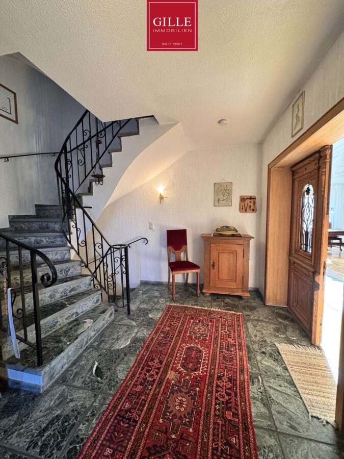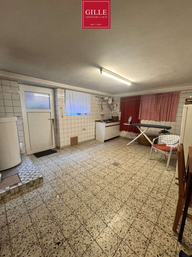 Das Haus ist vollständig unterkellert und bietet damit nicht nur reichlich Stauraum, sondern auch einen durchdachten Hauswirtschaftsbereich. Besonders hervorzuheben ist der Wäscheschacht, der direkt bis in den Hauswirtschaftsraum führt und damit einen seltenen, äußerst komfortablen Vorteil darstellt. Vom Garten aus besteht zudem ein Zugang zur Garage, sowie zum Keller – ein praktisches Detail, das den Alltag erleichtert.