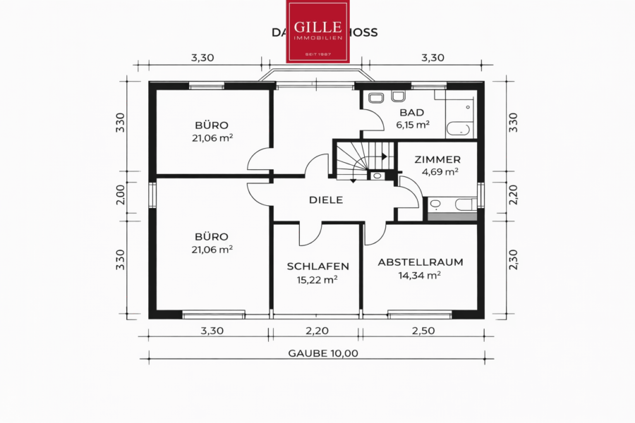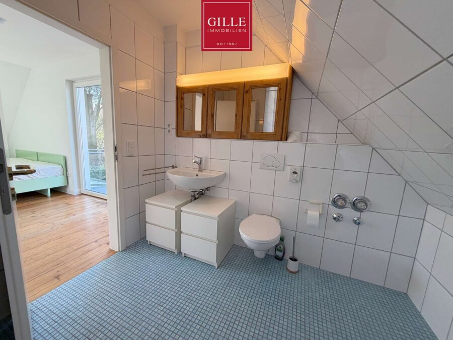 Das Dachgeschoss verfügt über eine ebenfalls gut strukturierte Aufteilung. Hier stehen zwei großzügige Räume zur Verfügung, die sich ideal als Arbeits-, Hobby- oder Kinderzimmer eignen. Ergänzt wird die Etage durch ein weiteres Schlafzimmer sowie einen zusätzlichen Raum, der als Abstellfläche oder Ankleide genutzt werden kann. Ein weiteres Badezimmer sorgt für zusätzlichen Komfort.