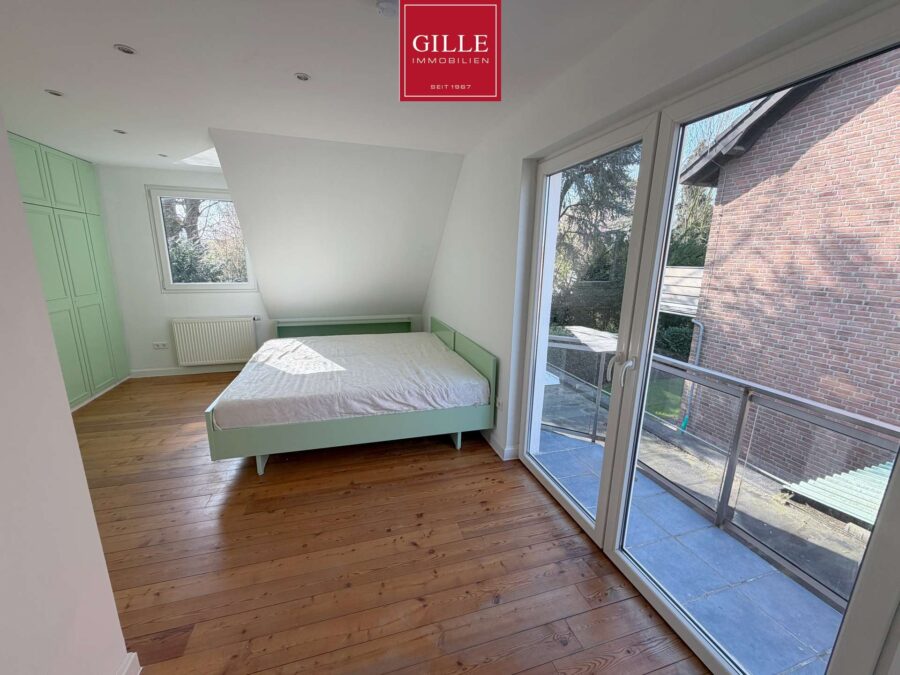 Mehrere Balkone im Dachgeschoss bieten Zugang ins Freie und erweitern die Nutzungsmöglichkeiten der Räume.