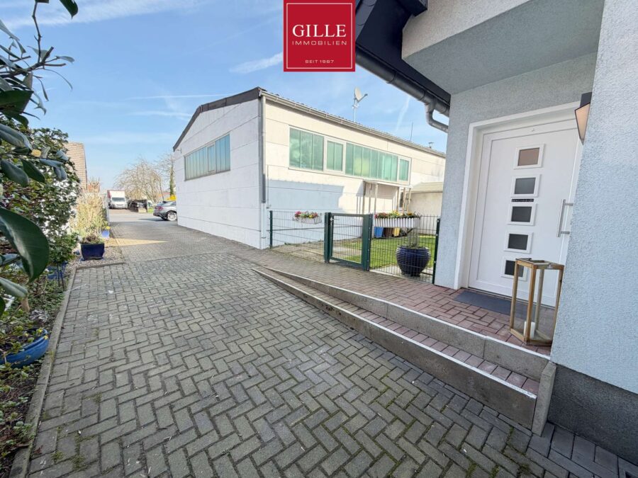 Neuss-Hoisten: Einmalige Gelegenheit, freistehendes 1-Familienhaus aus 2006 mit Gewerbehalle