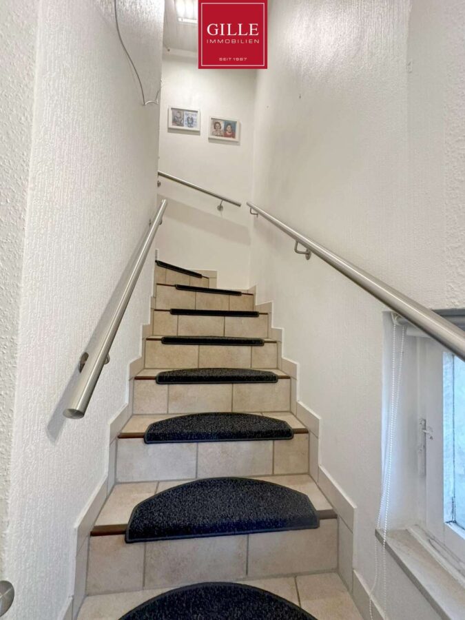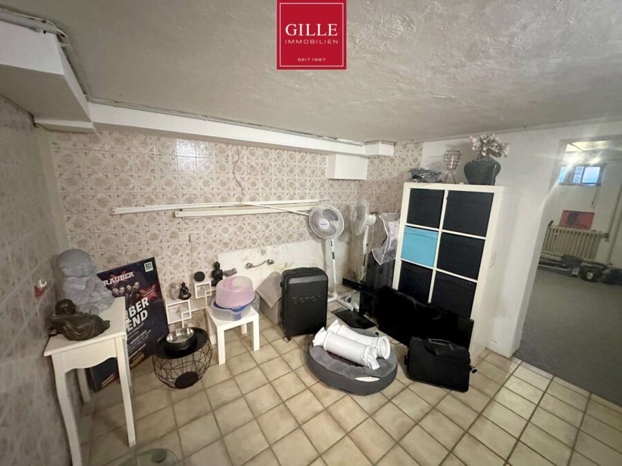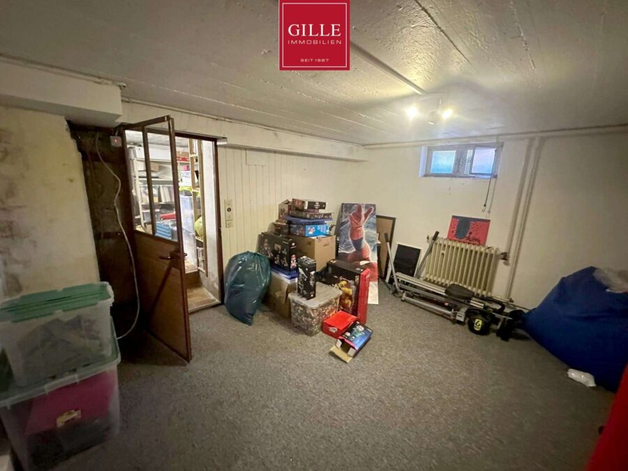 Im Kellergeschoss finden Sie zwei Kellerdielen, einen großen Hobbyraum mit neuwertigem Fenster zum Garten hin und zwei Kellerräume. Vom Kellergeschoss führt ein innenliegender Treppenaufgang in die großzügige Garage.