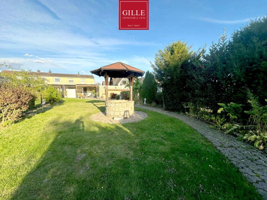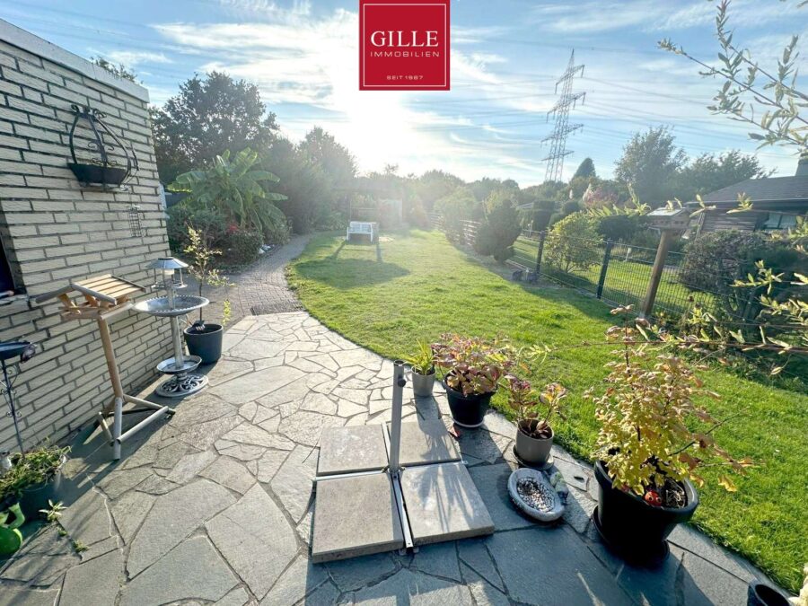 Das von Diele aus erreichbare großzügige und lichtdurchflutete Wohn-Esszimmer ist mit hellgrauen Bodenfliesen und einer großen Fensterfront inkl. Ausgangstüre zur Terrasse bzw. zum eigenen Garten versehen. Die ca. 20 m² große und schön angelegte Terrasse ist mit Natursteinen ausgestattet und bietet viel Platz für Essplatz, Grill und Sonnenliege. Der große und geschmackvoll gestaltete Gartenbereich lässt keine Wünsche offen. Von der teilweise überdachten Terrasse aus gelangen Sie in die großzügige Garage mit Zugang zur Waschküche. Die vorhandene Grundwasserpumpe ist derzeit ohne Funktion, kann bei Bedarf aber wieder reaktiviert werden.