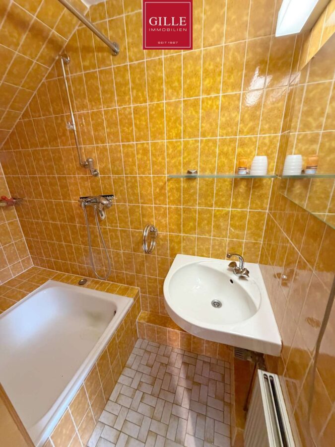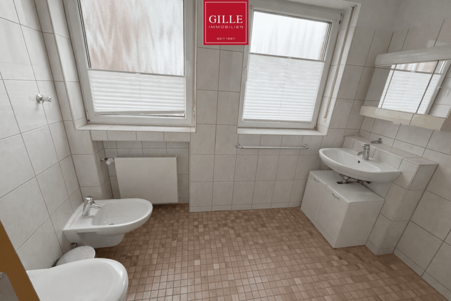 Das Badezimmer wurde ca. 2010 erneuert. Es präsentiert sich – wie das gesamte Haus – hell und ansprechend und bietet eine komfortable, gut nutzbare Gestaltung. Zwei große Fenster sorgen für sehr gute Belichtung und Lüftung.