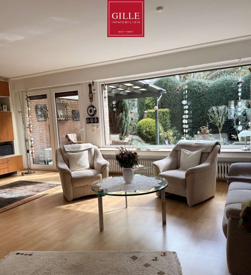 Die großzügige Diele im Erdgeschoss bietet Zugang zu allen Räumen und verfügt über eine gut gestaltete Garderobe mit Spiegel. Das Gäste-WC ist baujahrtypisch gefliest und verfügt über ein WC, Waschbecken und ein Fenster. Die funktionale Küche bietet viel Arbeitsfläche und einen Zugang zum Esszimmer. Die vorhandene Küche kann nach Absprache im Haus verbleiben. Das Esszimmer ist offen zum Wohnbereich gestaltet und bietet viel Platz für einen gemütlichen Familienessplatz. Sowohl im Essbereich als auch im Wohnzimmer wurde ein heller Laminatboden verlegt, der den Raum mit Helligkeit unterstreicht. Die sehr große Panoramascheibe bietet einen schönen Ausblick in den uneinsehbaren Garten.