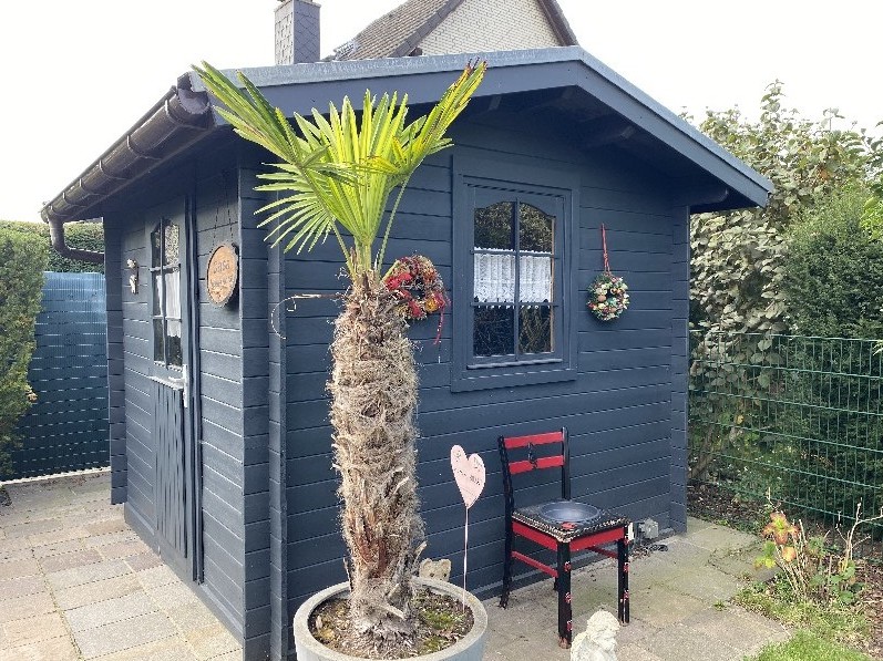In den Wintermonaten können Sie es sich am offenen Kamin gemütlich machen. Vom Wohnzimmer aus erreichen Sie die überdachte Terrasse. Hier verweilt man gerne geschützt vor Wind und Regen. Der Garten ist pflegeleicht angelegt und mit den vorhandenen Palmen fühlt man sich wie im Urlaub.