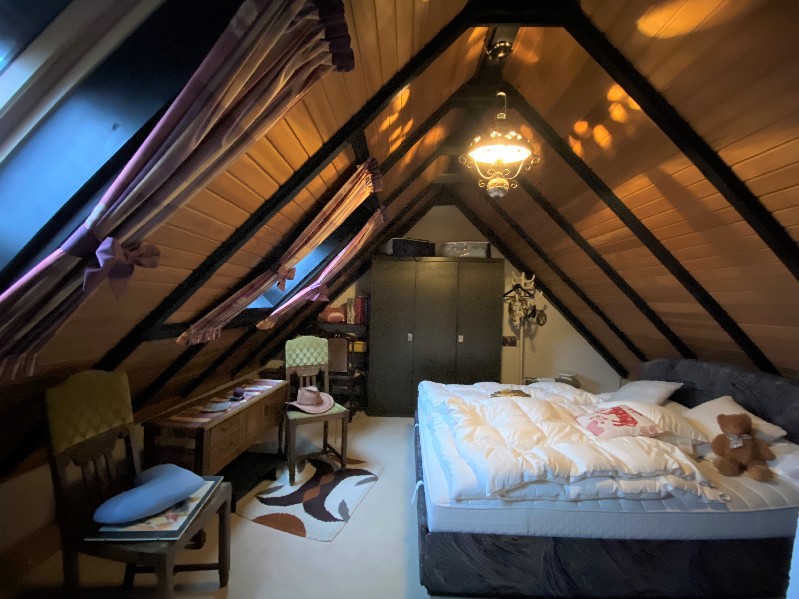 Über eine massive Treppe gelangt man in den ausgebauten Spitzboden. Dort gibt es ein gemütliches Zimmer unter'm Dach als weitere Nutzfläche.