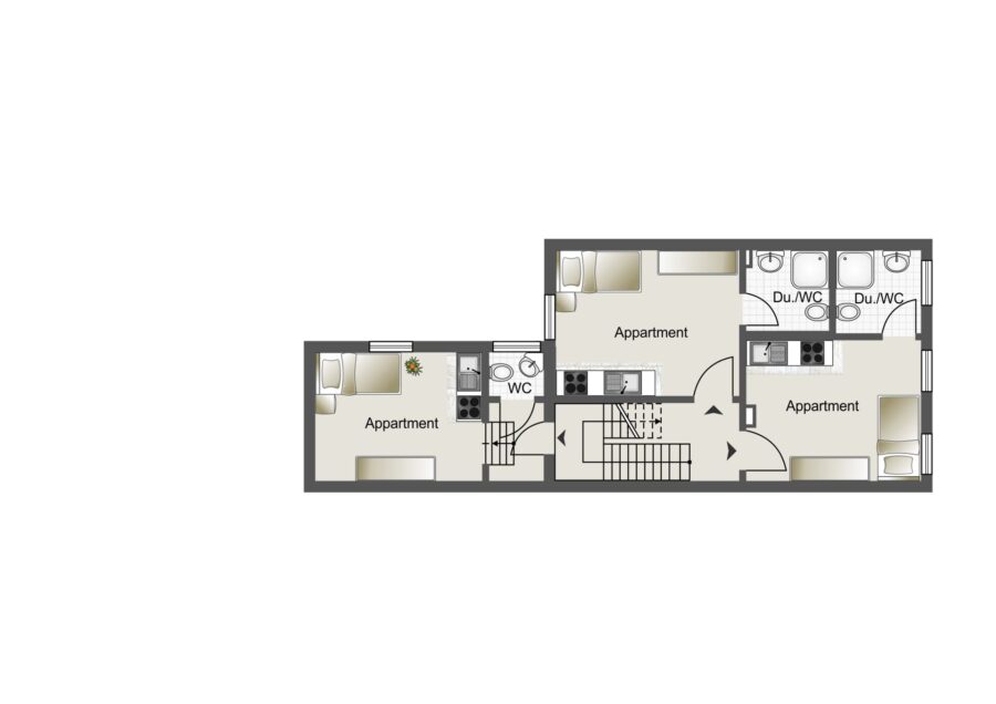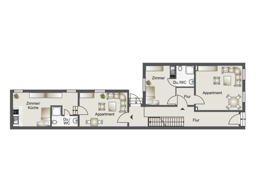 Insgesamt umfasst das Haus sechs Wohneinheiten, die sich wie folgt aufteilen: