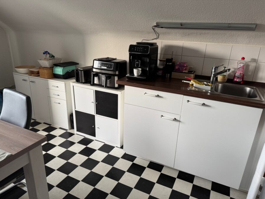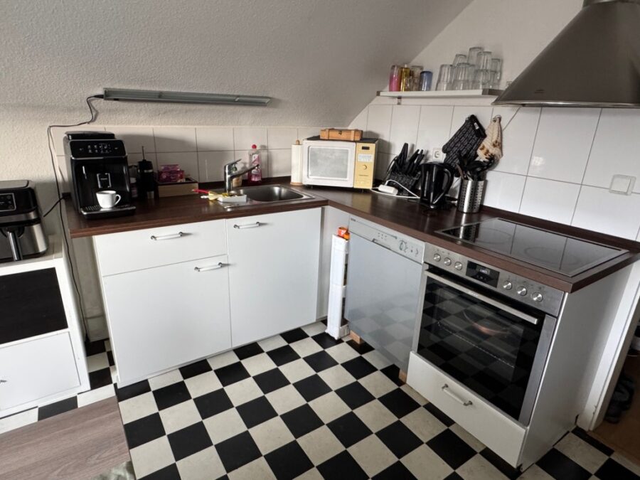 Die Einbauküche des derzeitigen Mieters kann kostenlos übernommen werden. Die Einbauküche besteht aus: Dunstesse, Backofen, Herd mit Ceranfeld, Spülmaschine, Mikrowelle (Absprache zwischen den Mietparteien).
