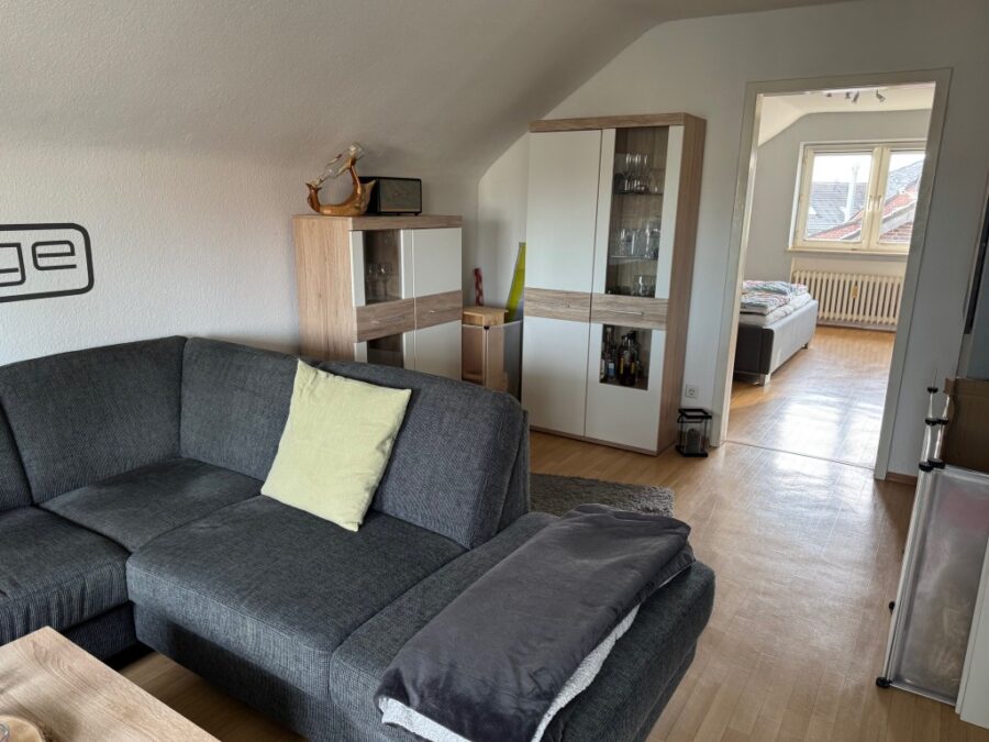 Hier sehen Sie eine helle und schöne als auch ruhige und gut geschnittene 2-Zimmer-Dachgeschoss-Wohnung mit Balkon und Ausblick ins Grüne in zentrumsnaher Lage in einem gepflegtem 3-Parteien-Haus. Perfekt macht der Blick in den schön angelegten Garten diese Wohnung zum "Erholungspunkt".
