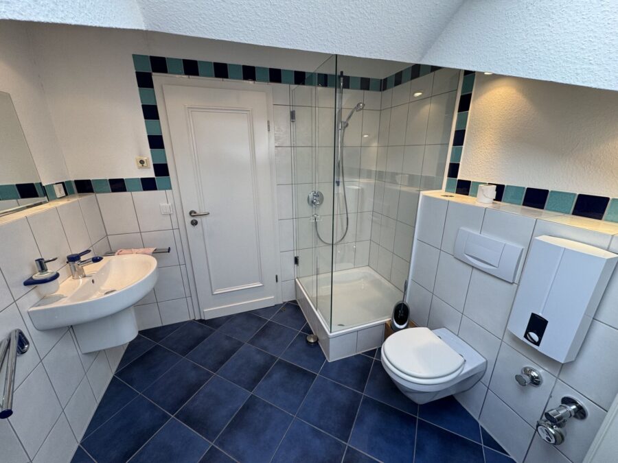 Ein zusätzliches Duschbad mit Stellfläche sowie Anschlüssen für Waschmaschine und Trockner rundet das Raumangebot ab.