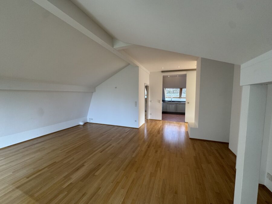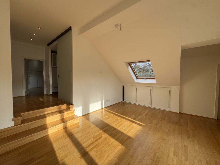 Diese großzügige 4-Zimmer-Wohnung überzeugt durch eine besondere Raumstruktur und ein helles, offenes Wohngefühl. Der Wohn- und Essbereich ist durch drei Stufen voneinander getrennt und schafft so eine elegante, architektonisch reizvolle Zonierung mit klar definierten Bereichen und angenehmer Großzügigkeit.