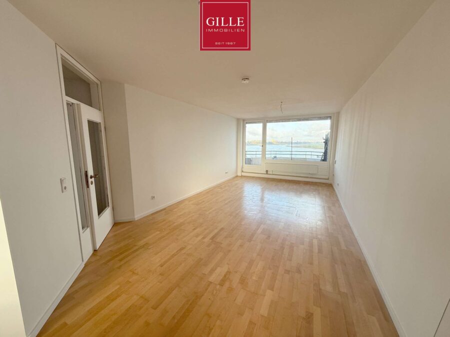 Der großzügige und lichtdurchflutete Wohn- und Essbereich lässt keine Wünsche offen. Hier genießen Sie einen wunderbaren Blick auf den Rhein. Die große Dachterrasse zur Rheinseite bietet Ihnen u.a. einen Blick auf den Düsseldorfer Fernsehturm. Der Bodenbelag der Dachterrasse wird im Zuge der Modernisierung noch erneuert.