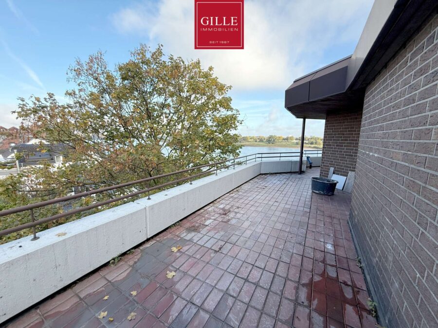 - Große Dachterrasse mit Rheinblick, erhält noch einen neuen Bodenbelag