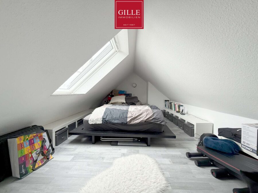 Über eine Treppe erreichen Sie den Spitzboden, welcher sich als Schlafbereich anbietet. Der Spitzboden ist ebenfalls mit einem hellen Laminatboden versehen und verfügt über eine Klimaanlage, welche im Sommer für ein angenehmes Raumklima sorgt.