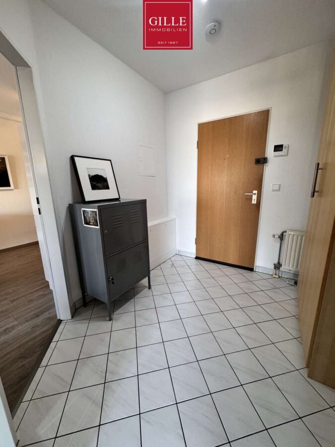 Beim Betreten der Wohnung gelangen Sie in eine praktische Diele, die ausreichend Platz für eine Garderobe bietet und alle Räume zentral erschließt.