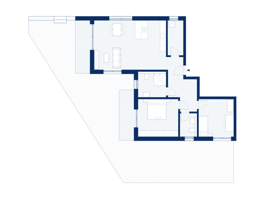 Besonders attraktiv sind die beiden Terrassen: Eine ist vom Wohnzimmer, die andere vom Schlafzimmer aus zugänglich. Sie bieten sonnige Rückzugsorte im Freien und erweitern den Wohnraum ideal. Zusätzlich gehört ein eigener Gartenanteil zur Wohnung, der für Freizeit, Erholung oder eigene Gestaltungsmöglichkeiten genutzt werden kann.