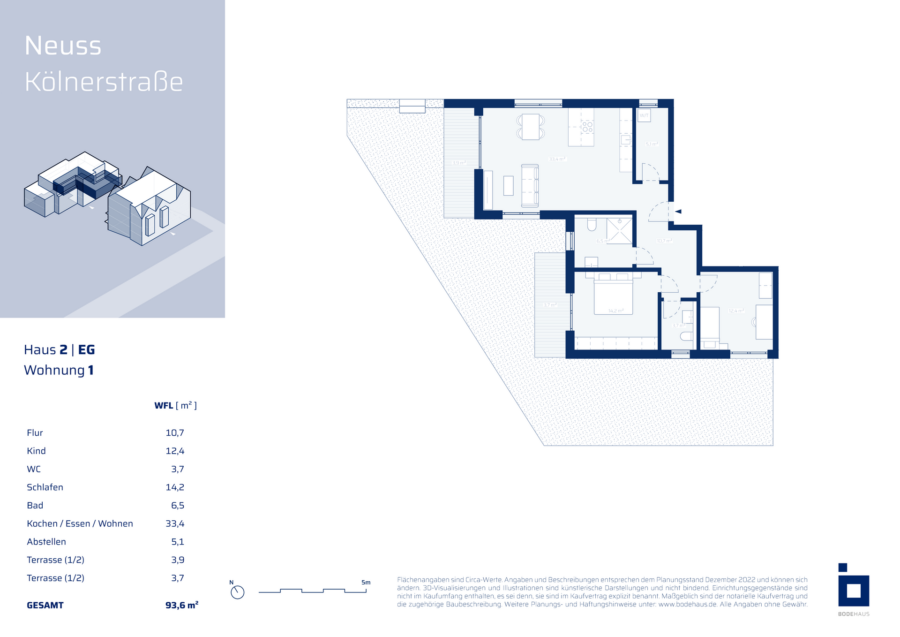 Die 3-Zimmer-Erdgeschosswohnung im Neubauprojekt an der Kölner Straße 246 in Neuss bietet auf ca. 93,6 m² Wohnfläche ein modernes und großzügiges Wohnambiente. Der offene Wohn- und Essbereich bildet das Herzstück der Wohnung und bietet viel Raum für gesellige Abende oder entspannte Stunden.