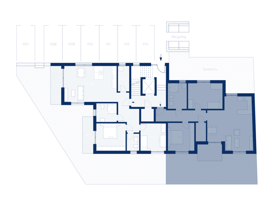 Ein eigener Abstellraum im Erdgeschoss, sowie ein Fahrradabstellraum runden das Angebot ab. Optional kann ein Stellplatz erworben werden.