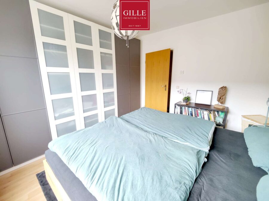 Das helle Schlafzimmer sowie das angrenzende Kinder- oder Arbeitszimmer wurden mit einem hellen Laminatboden ausgelegt und verfügen über genügend Abstellmöglichkeiten und Tageslicht. Beide Räumen sind mit manuelle Außenrollläden ausgestattet.