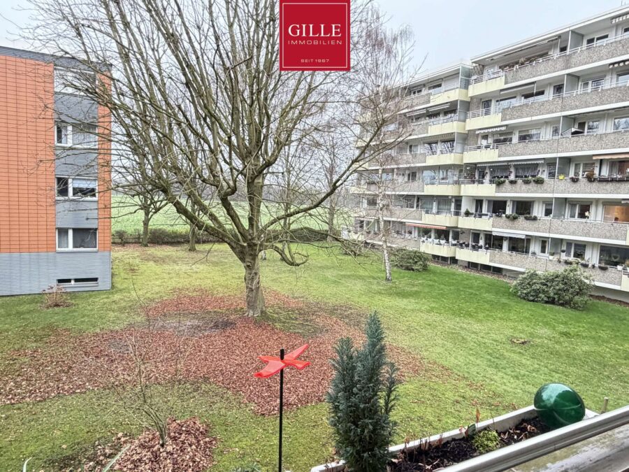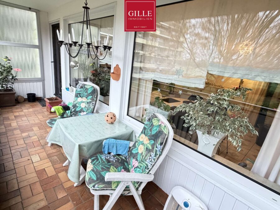 Der Küche und dem Wohnzimmer vorgelagert befindet sich die große Fensterfront und der sehr große Balkon mit Blick zur Gartenfläche nach Westen.
