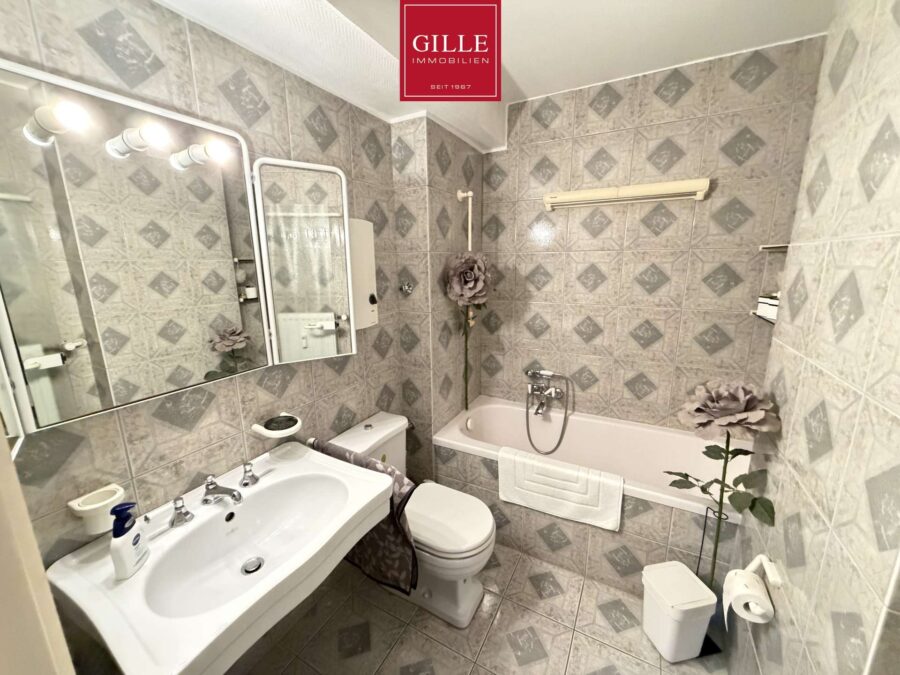 -renoviertes Bad mit Wanne, WC, Waschbecken