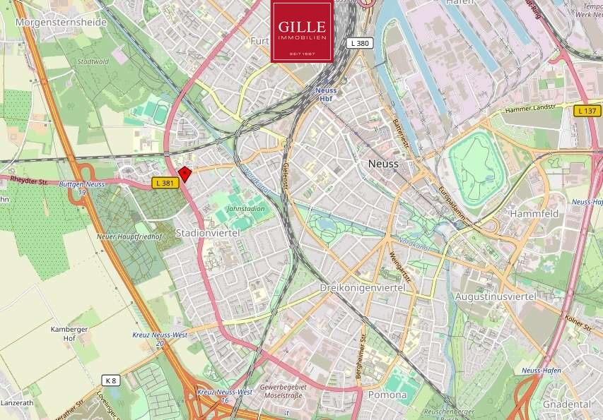 Das Stadionviertel in Neuss gilt als besonders bevorzugtes Wohnviertel mit einer guten Mischbebauung. Hier finden Sie sowohl die luxuriöse Villa als auch die hochwertige Eigentumswohnung oder das gepflegte Mehrfamilienhaus. Die Bäckerei, die Apotheke, Friseur, Ärzte, Zahnärzte und die Sparkassenfiliale sind gut erreichbar und das Lukaskrankenhaus befindet sich ebenfalls in der Nähe.