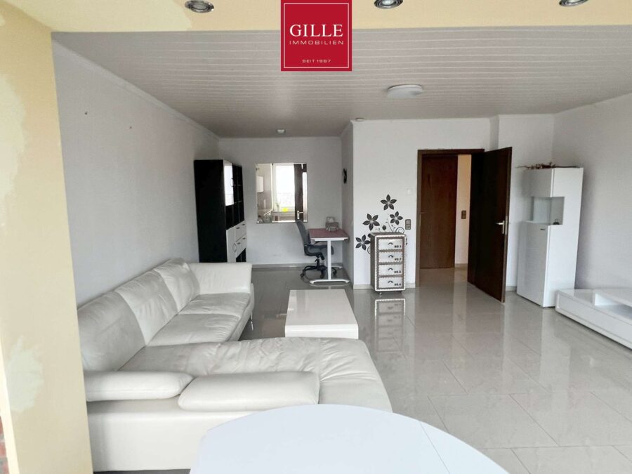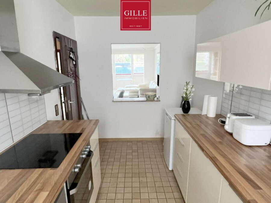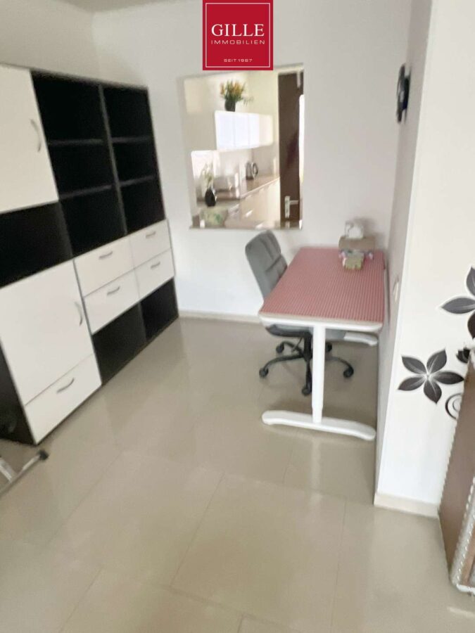 mit Durchreiche zur Küche, ein Schlafzimmer, ein Kinderzimmer, ein Gäste-WC sowie