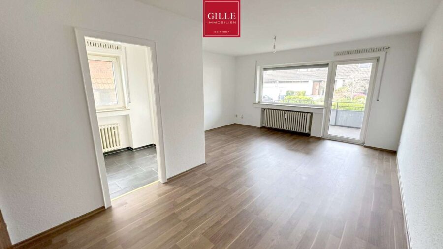Die helle und gut geschnittene Wohnung ist mit einer Eingangsdiele inkl. großen weißen Einbauschrank, einem hellen und modernen Tageslichtbad, einem Schlafzimmer und einem großzügigen Wohn-Esszimmer mit Zugang zur kleinen Funktionsküche und zum eigenen Balkon ausgestattet.