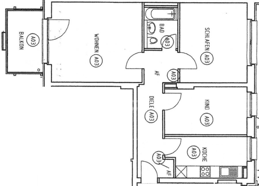 Die Raumaufteilung umfasst eine Diele, von der aus alle Räume zugänglich sind, ein geräumiges Wohnzimmer mit Zugang zur Loggia, eine Küche, ein modernisiertes Duschbad sowie ein Kinderzimmer und ein Schlafzimmer.