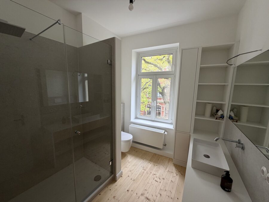 Die Wohnung wurde im Zuge einer umfassenden Sanierung vollständig modernisiert und wird nun zum Erstbezug nach Sanierung angeboten. Dabei wurde besonderer Wert auf eine hochwertige Ausführung und den Erhalt des klassischen Altbauflairs gelegt.