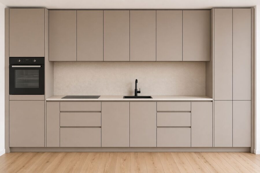 Die Wohnung verfügt über einen gut geschnittenen Wohnbereich, ein separates Schlafzimmer sowie eine Küche mit ausreichend Platz für einen Essbereich. Das modern gestaltete Badezimmer ist mit einer großzügigen Dusche ausgestattet und wird durch ein separates Gäste-WC ergänzt. In beiden Bereichen sorgen maßgefertigte Einbauten für praktischen Stauraum. Darüber hinaus gehört zur Wohnung ein separates Kellerabteil.