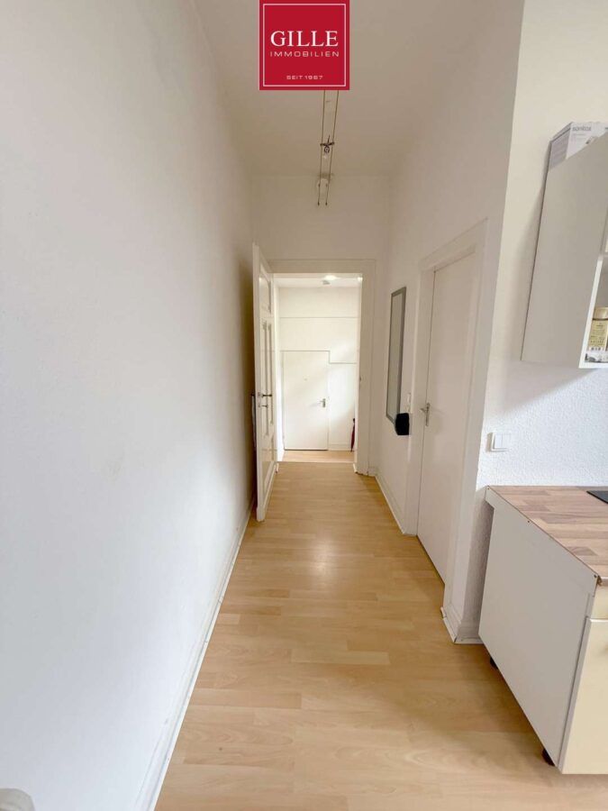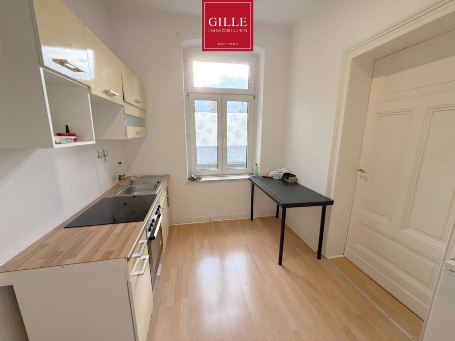 Die offene Küche bietet Ihnen genügend Platz für eine Küchenzeile und einen kleinen Esstisch. Auf Wunsch kann die auf den Fotos abgebildete Einbauküche gegen eine Abstandszahlung von dem aktuellen Mieter übernommen werden.