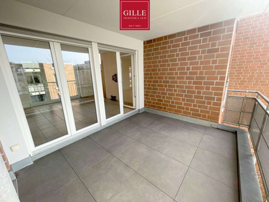 Die schön und ruhig gelegene Loggia mit Süd-West Ausrichtung ist mit neuen großformatigen anthrazitfarbenen Terrassenfliesen versehen und bietet Ihnen einen tollen Ausblick.