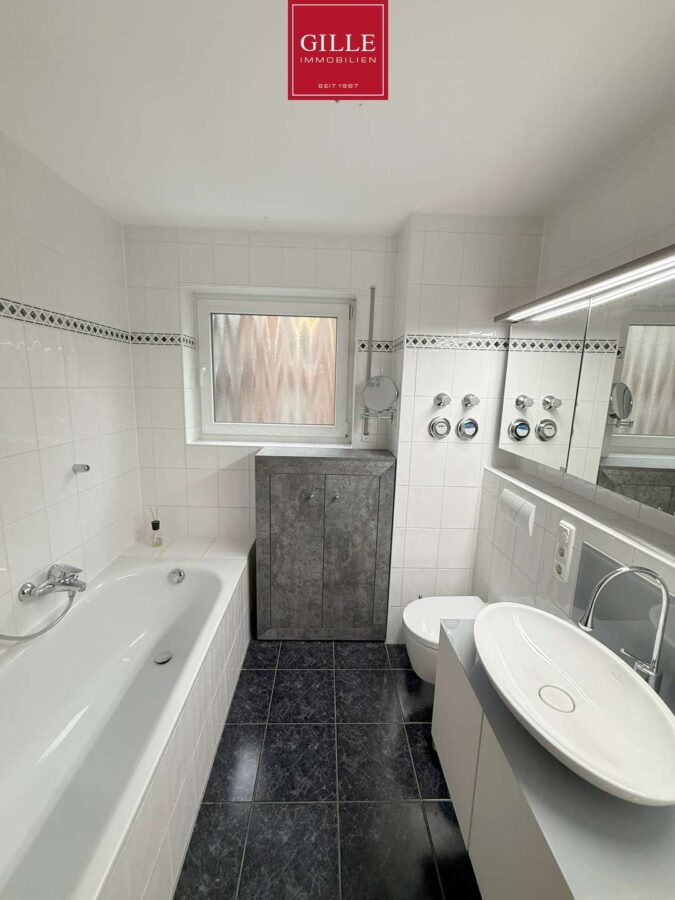 - Bad en Suite mit Badewanne, WC, modernem Waschtisch, Spiegelschrank, Fenster u. Badmobiliar (Sanierung 2017)
