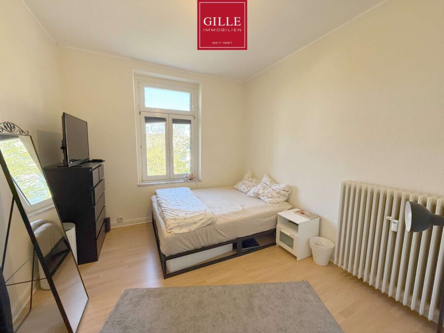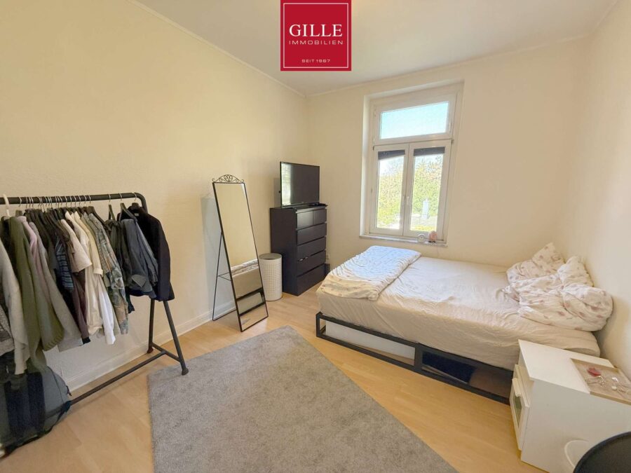 Der Wohn- und Schlafraum ist zum Hinterhof des Hauses ausgerichtet und bietet Ihnen entsprechende Ruhe.