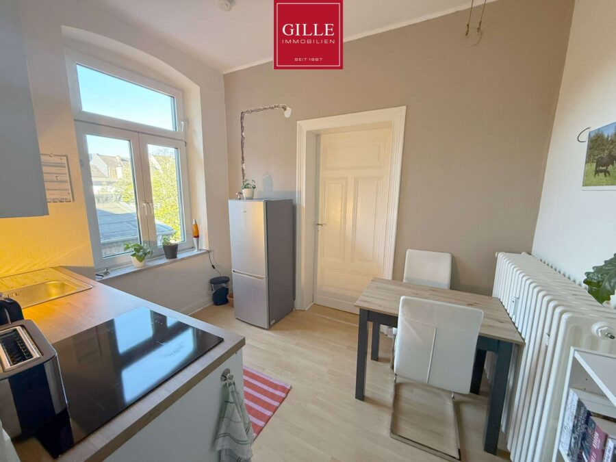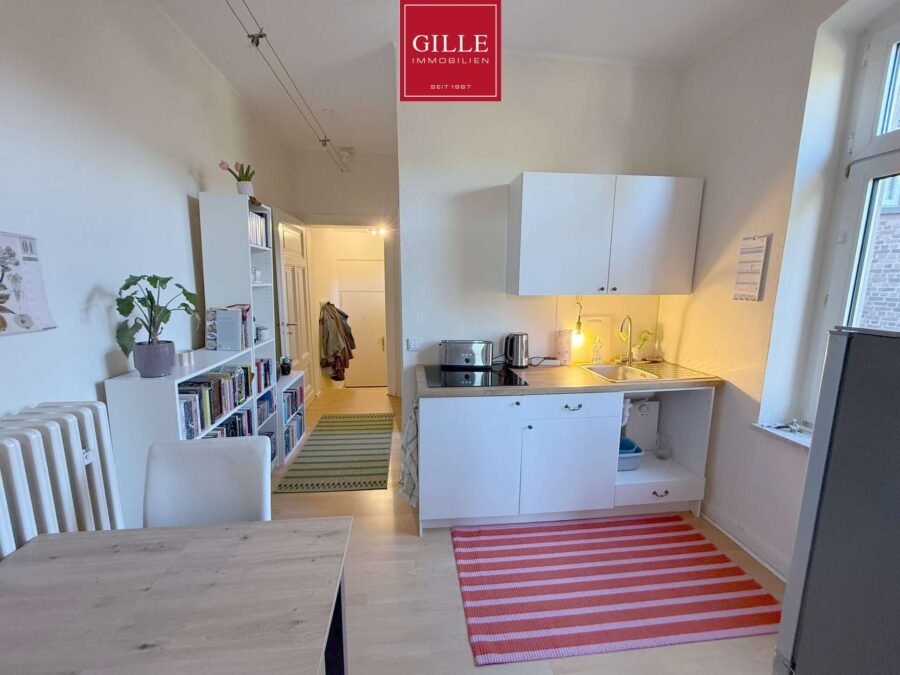 Die offene Küche bietet Ihnen genügend Platz für eine Küchenzeile und einen kleinen Esstisch. Auf Wunsch kann die auf den Fotos abgebildete Einbauküche gegen eine Abstandszahlung von der aktuellen Mieterin übernommen werden.