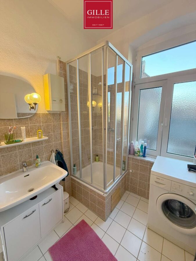 - Tageslichtbadezimmer mit Dusche inkl. neuer Duschabtrennung, Waschbecken und Waschmaschinenanschluss