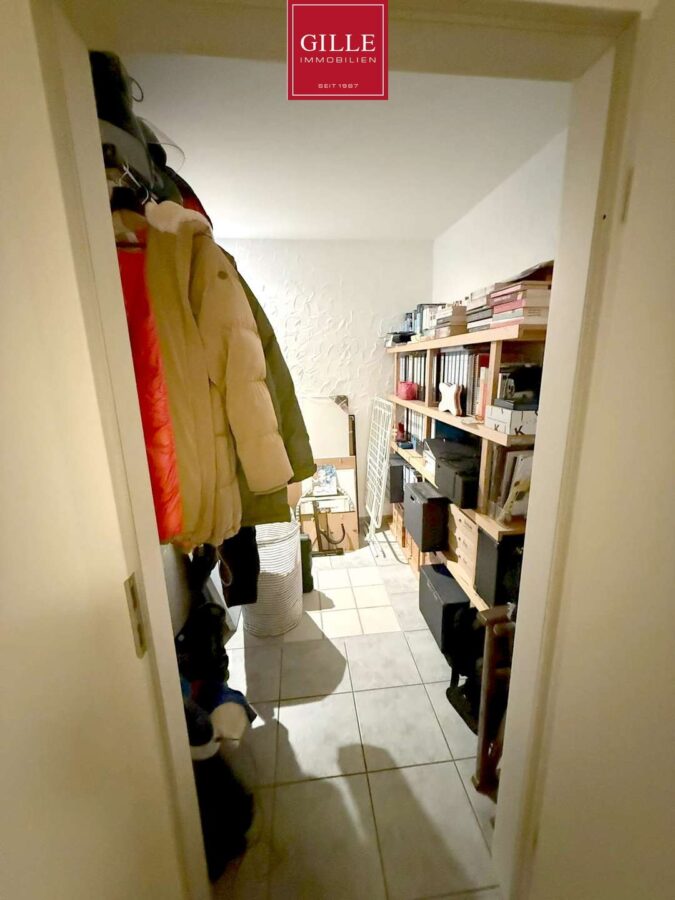 Zur Wohnung gehört ein gemeinschaftlich nutzbarer Wasch- und Trockenraum und eine kleine Abstellfläche im Kellergeschoss. Ein separater Kellerraum steht nicht zur Verfügung.
